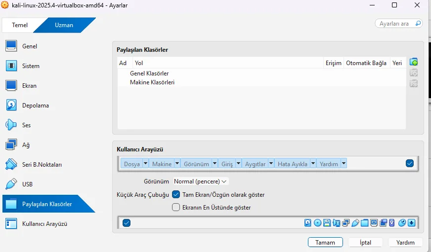 Virtual Box'ta olan işletim sistemi klasörleri arasında bağlantı kuruyor.