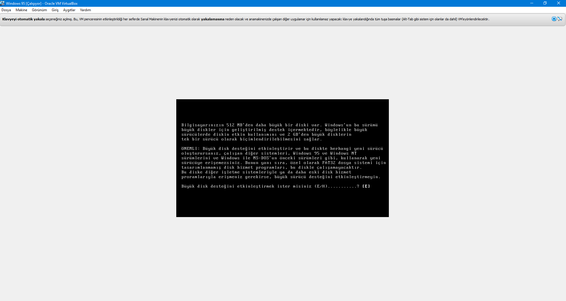 Tamam önemli degil hocam oraya e yazın sonra hangi ekran gelecekBu arada 1. seçeneği seçtim ve fdisk dedim.