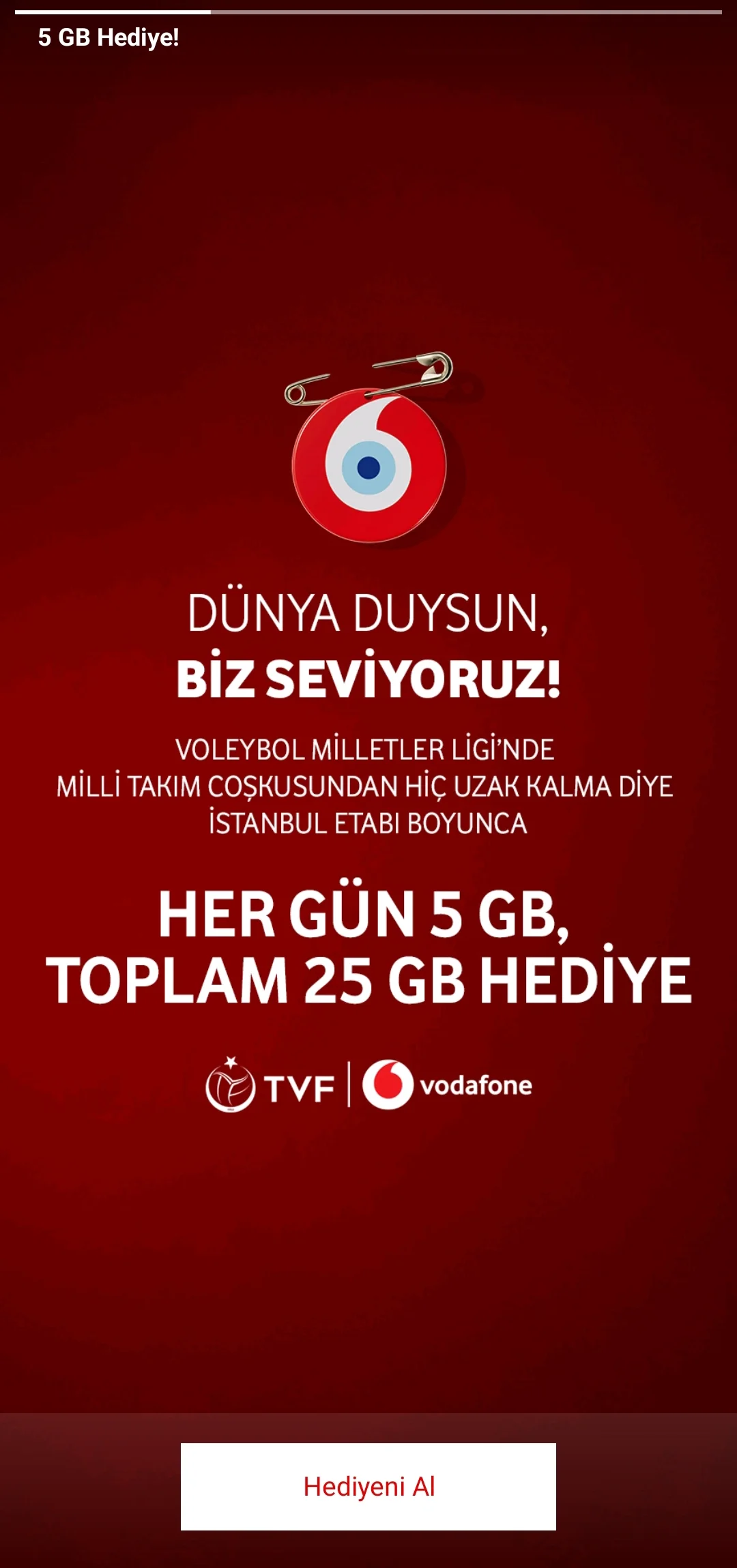 Yaptım sağolVoleybol Milletler Ligi İstanbul etabı boyunca geçerli her gün günlük 5 GB internetinizi Yanımda uygulaması üzerinden alabilirsiniz.