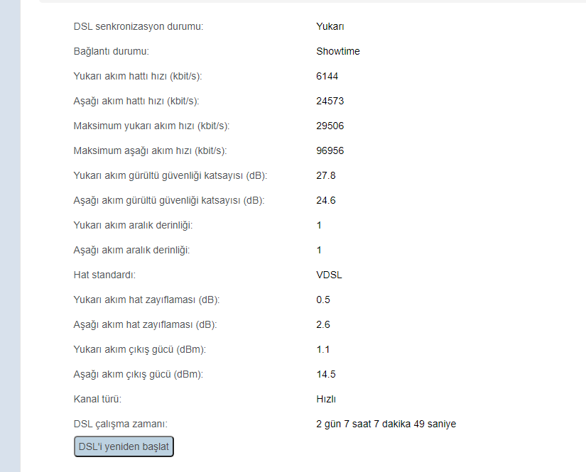 Üf 1mbps yükseldi hahahabi yeniden başlat bakalm değişecek mi