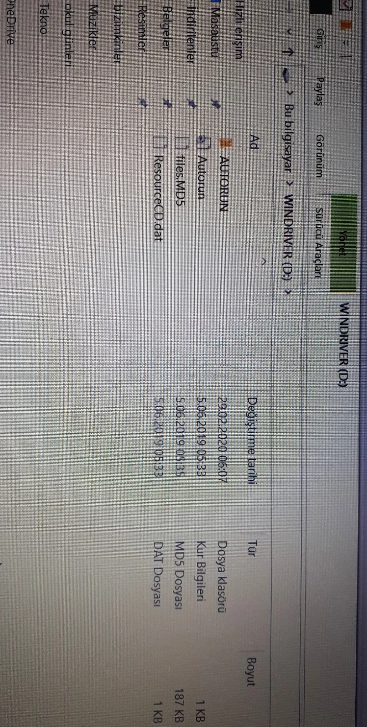 W10 kurulumu sonrası D dosyası