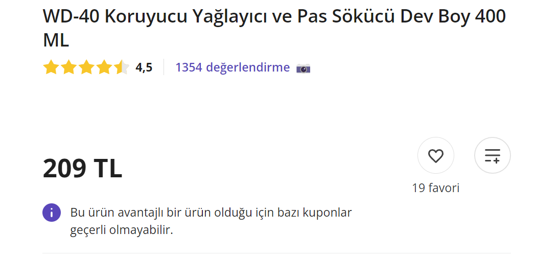 ❌İndirim Bitti! WD-40 Koruyucu Yağlayıcı ve Pas Sökücü Dev Boy 400 ML 119,90TL
