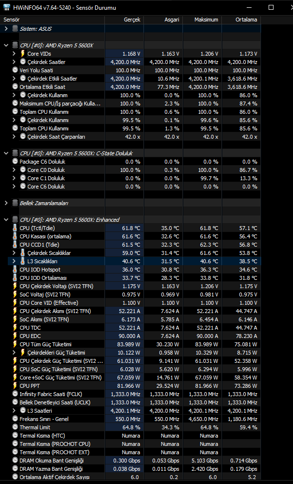 Bileşen tarafından bildirilen: İşlemci Çekirdeği