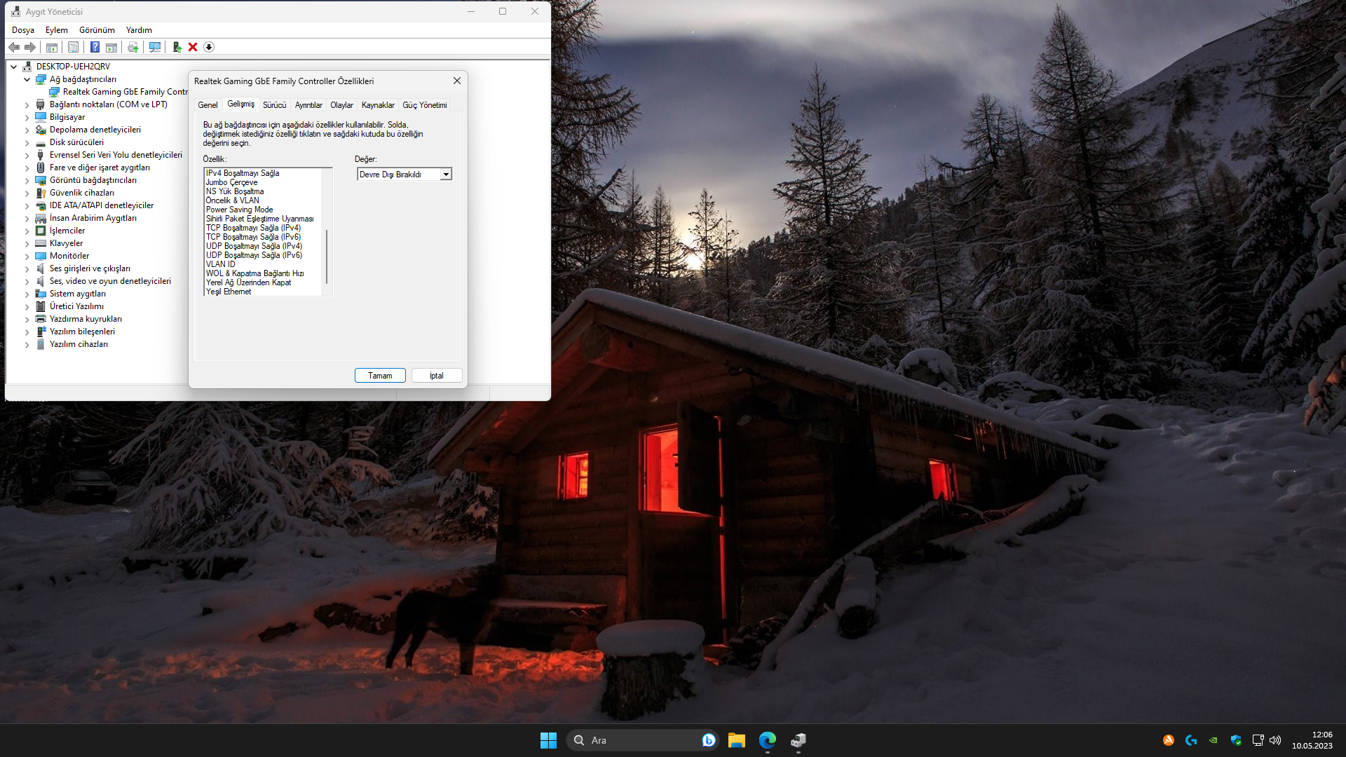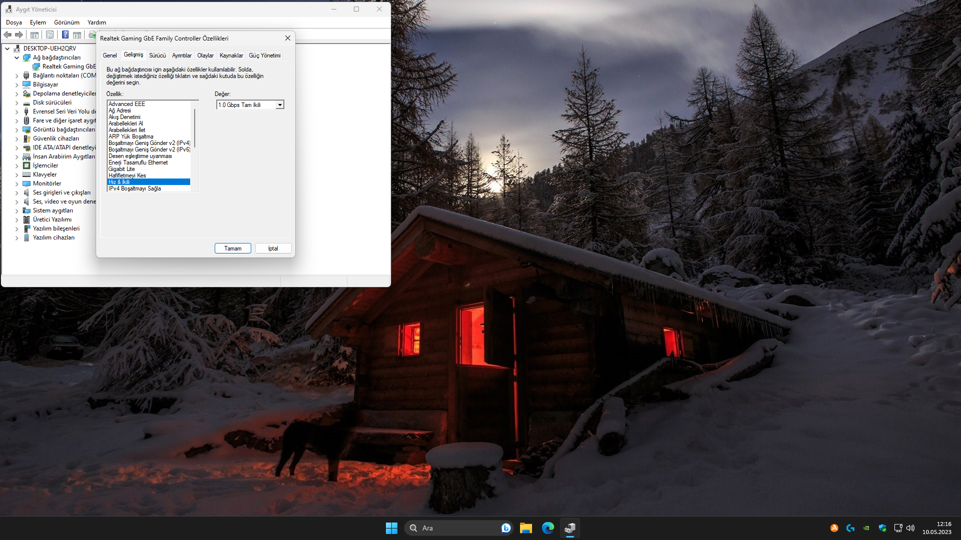 Aygıt yöneticisine girin, ağ bağdaştırıcıları sekmesinden Realtek'e sağ tıklayın. Gelişmiş sekmesine tıklayın. Speed & Duplex özelliğini seçin. Değeri 1.0 Gbps Full Duplex olarak ayarlayın. Daha sonra tamam deyip çıkın. İnternet gidip gelecektir. İsterseniz PC'yi de yeniden başlatabilirsiniz. Daha sonra tekrar deneyin hız testini. Ookla'dan yapmanızı tavsiye ederim. Belki düzelir.