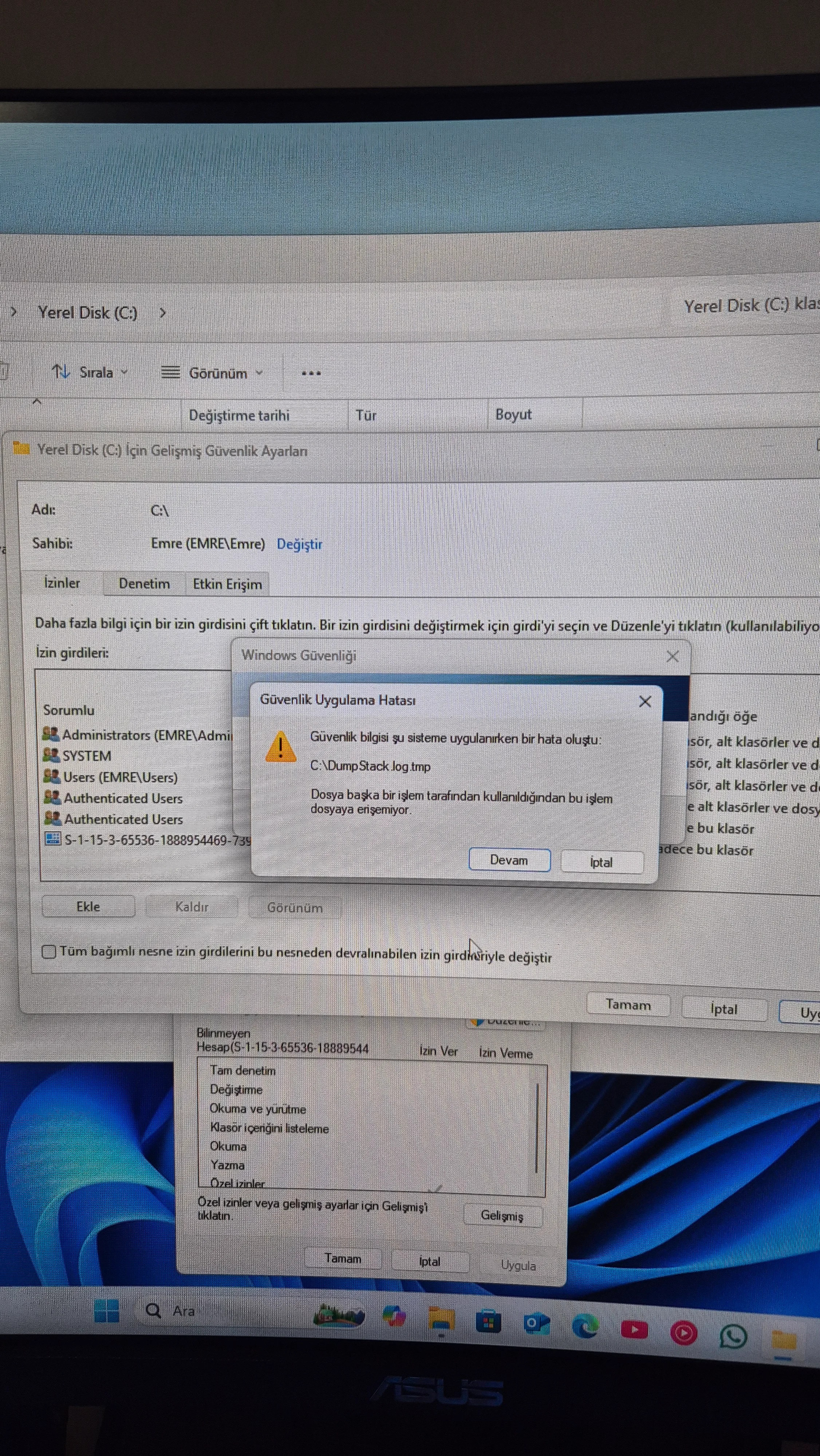 He anladım hocam, ben de devam deyince ekstradan bir şey oluyor diye sordum. Windows'a yeni kullanıcı ekleyip onu yönetici yapıp, oradan yapmayı denedin mi?