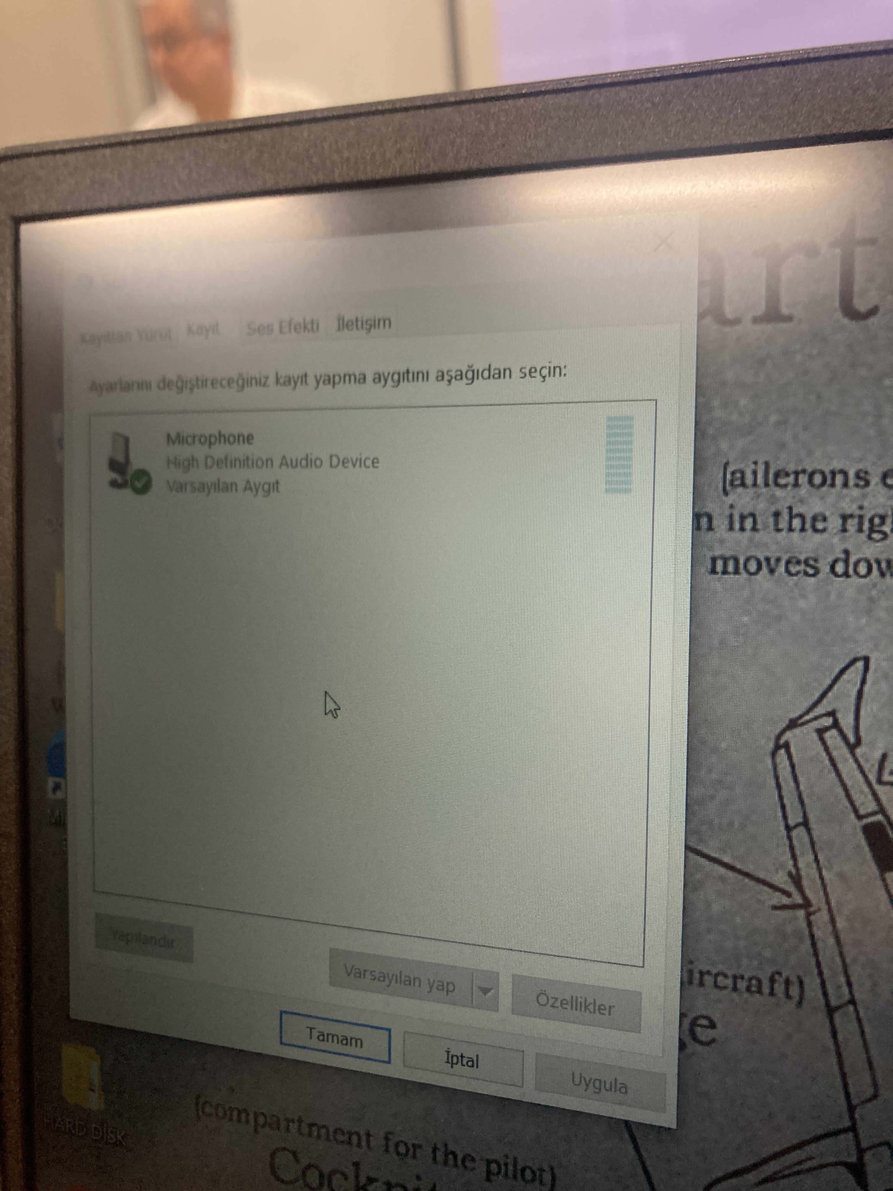 Normal kulaklık mikrofonu çalışıyor fakat laptopun kendi Microfonu çalışmıyor. Fotoğraf 2 ve 3 de yer almaktadır.