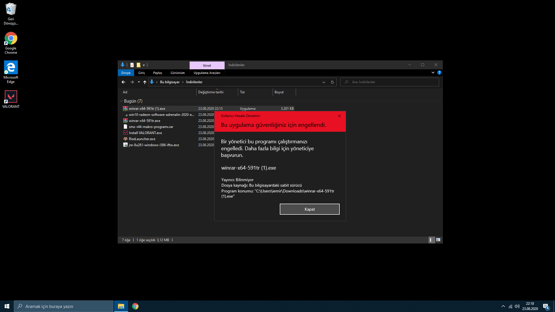 Bilgisayarı sıfırladım ama winrar kuramıyorum engelliyor windows ne yapmam lazım?