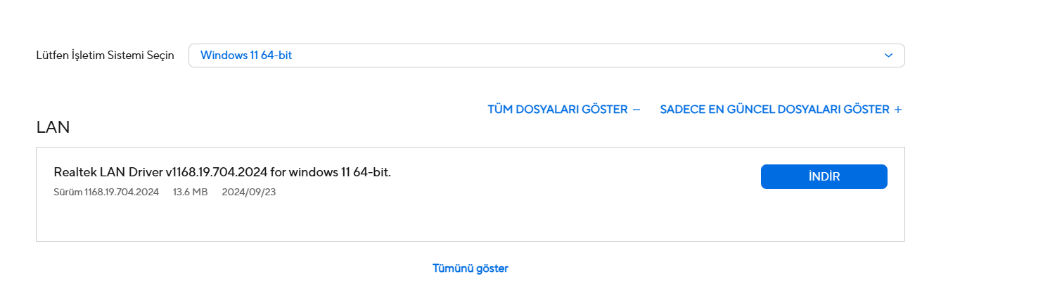 Kartta wifi yoksa direk bunu kurun ben wifi de vardır diye dedim.Bu kablolu bağlantı sürücüsü wifi sürücüsü de olması lazım. Bence bunu da kurun.