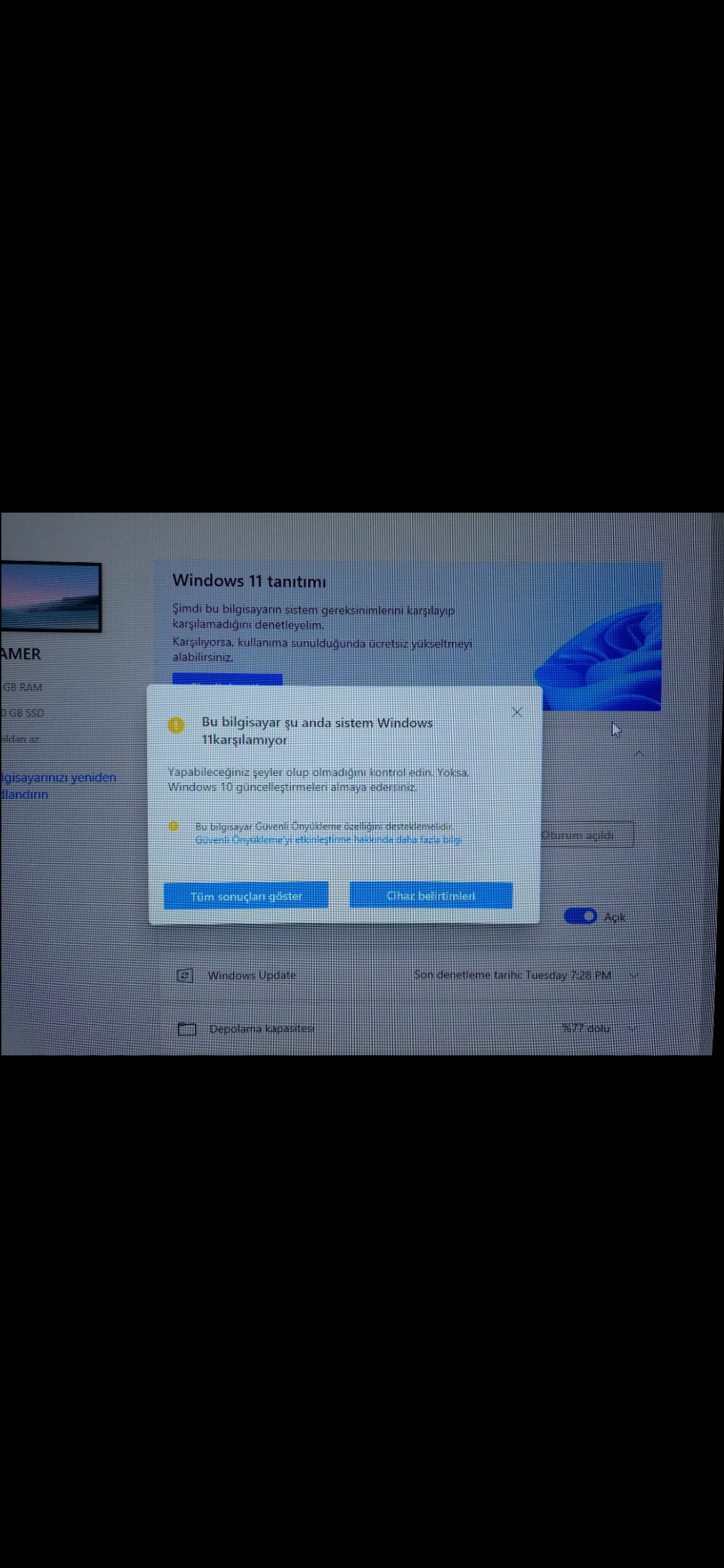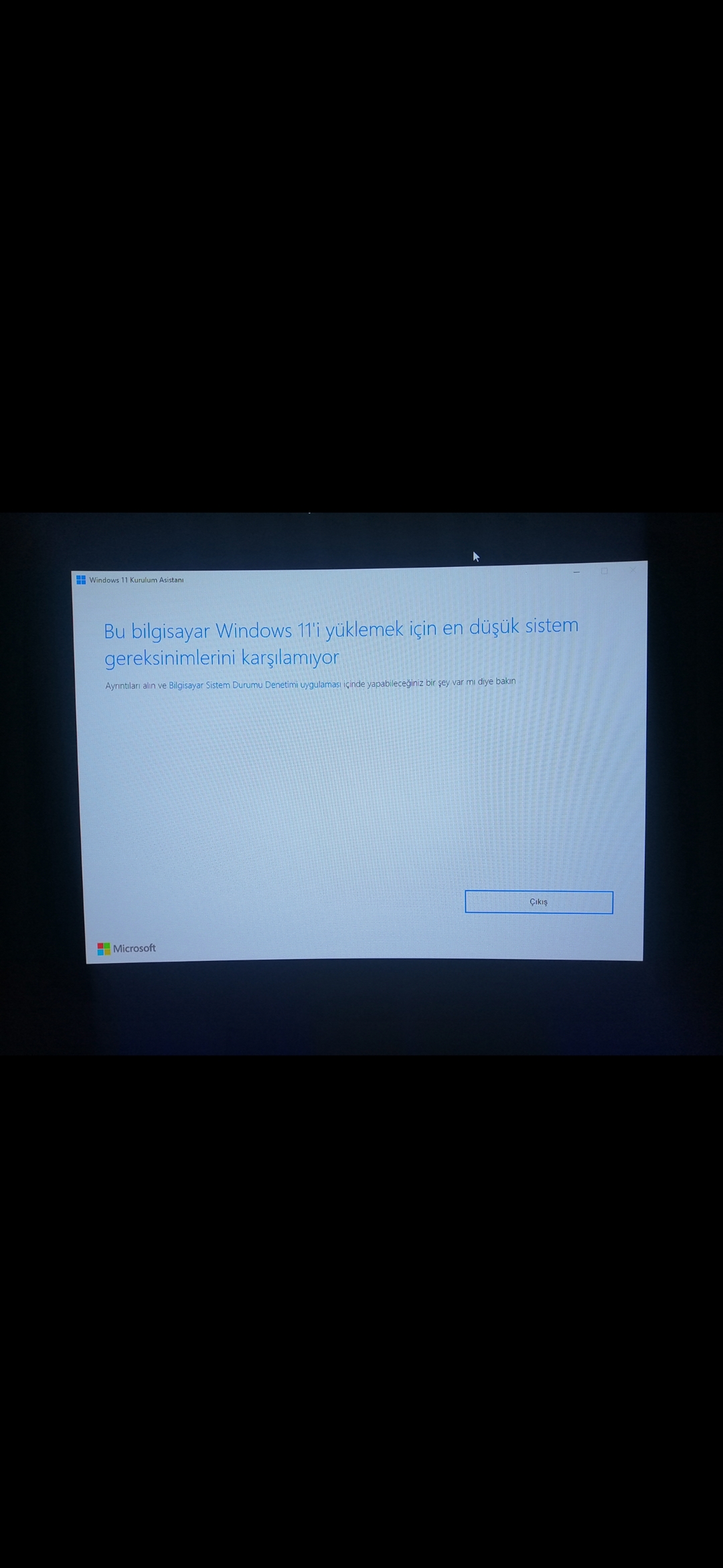 Windows 11 kurulum asistanını yükledim fakat sistem gereksinimleri karşılanmıyor yazıyor. Ne yapmalıyım?