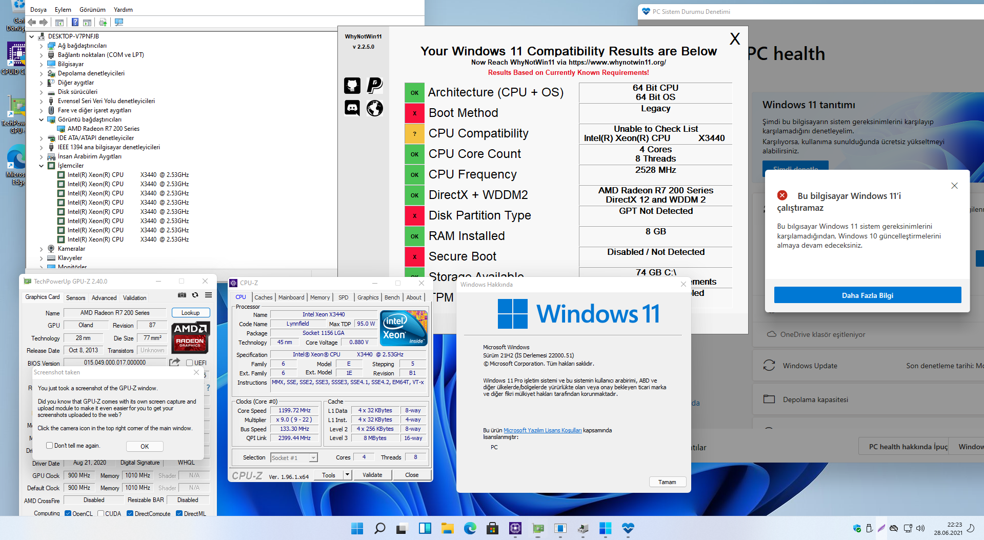 Majdev isimli arkadaşımız tarafından 1. nesil intel işlemcilere uyumlu olmuyan yani windows 11 Pro kurulumu düzenli iso ile yapmış ve başarılı bir sonuç almıştır. Düzenlenmiş iso ile sizde isterseniz kurulum yapabilirsiniz.