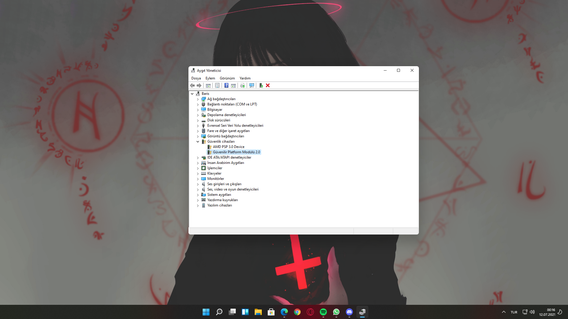 1) Yöntem: Aygıt Yöneticisi > Güvenlik Cihazları > Güvenilir Platform Modülü 2.0