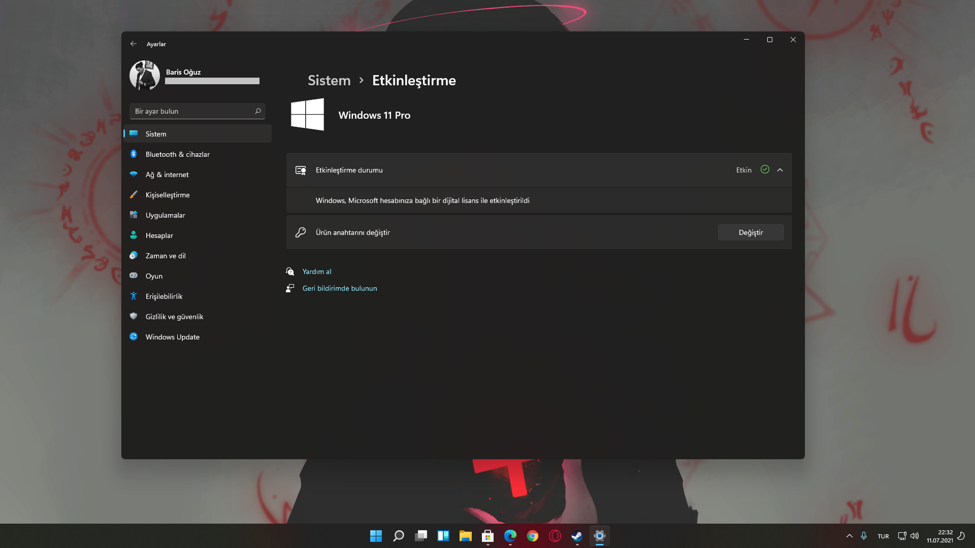 Windows 11 Pro Eski Windows 10 Pro sistemimdeki Lisansı Windows 11 Pro ya da eposta üzerinden "Otomatik olarak lisansladı".