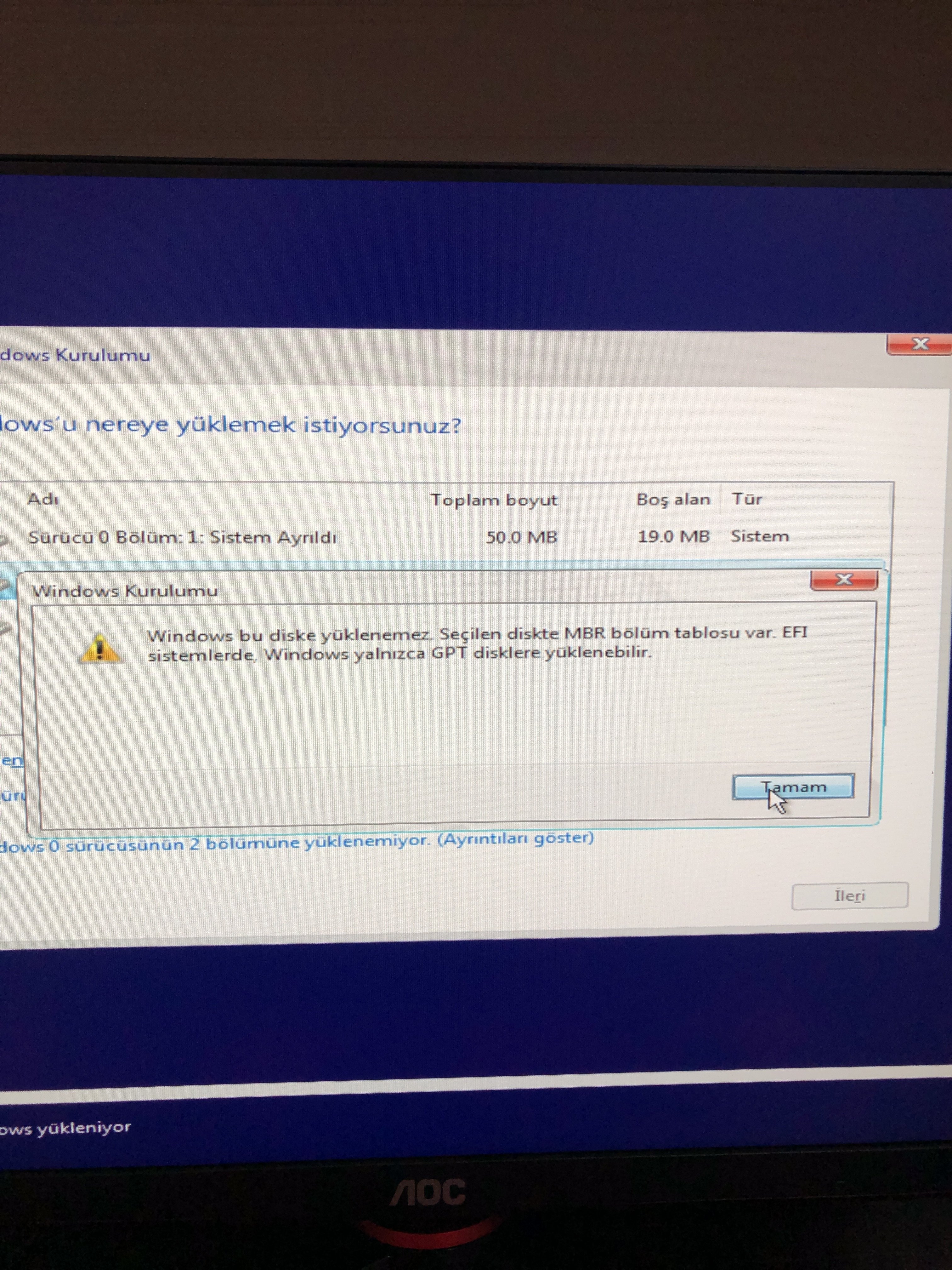 RTX3070 80+ Platinum Katılım 23 Mart 2020 Mesajlar 11,879 En İyi Cevap 7 Reaksiyon skoru 9,087 3 Ekim 2020 #3 BIOS'u UEFI moduna al veya o diski GPT olarak formatla.