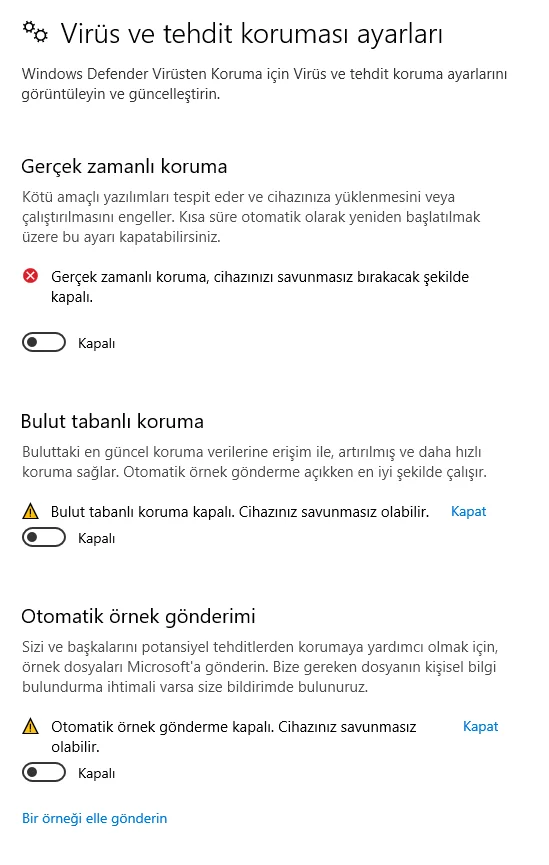 Hizmetlerden güvenlik duvarını veya güvenlik ile ilgili birşeyi kapattın mı?