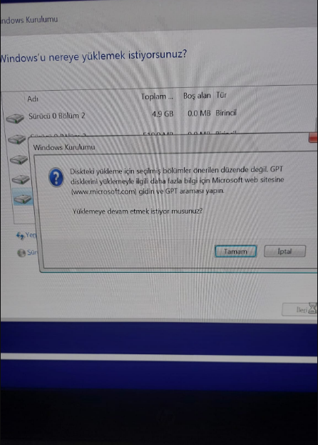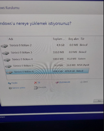 Windows 10 pro kurulumu yapıyordum freedos laptopa. Bir noktaya kadar sorunsuz geldim. ayrılmamış alan-yeni-oluştur yaptım. 2 yeni bölüm açtı. bölüm 6 ile devam etmek istediğimde ise uyarı veriyor.