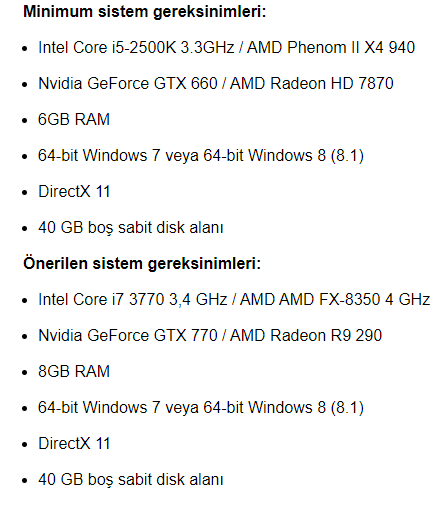 witcher 3'ü orta ayarda oynatacak 30-40 fps şeklindeki sistem nasıl olmalıdır?
