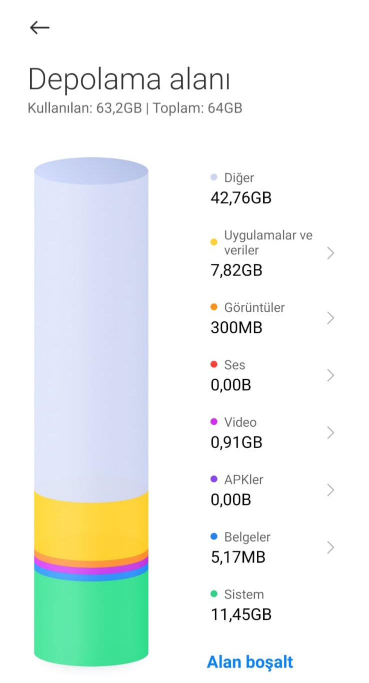 Depolama kısmına baktığımda Diğer kısmı 43gb yer kaplıyo gözüküyo. Diğer şeylere bakabilirken Diğer kısmına bakamıyorum içinde neler olduğunu. Nasıl bakabilirim