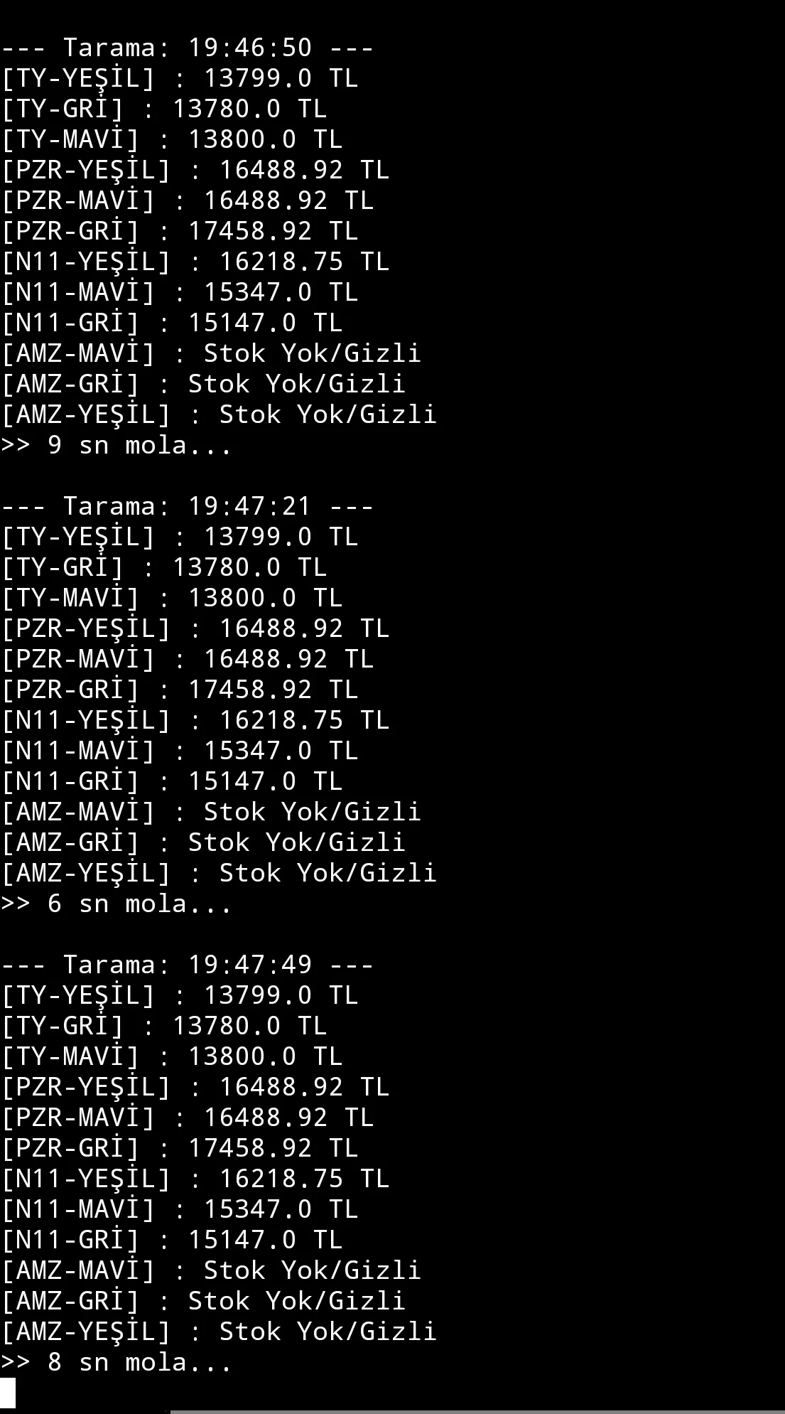 Böyle fiyatları çekmek yerine direkt teknosa mağazasında pad 7 aramak daha mantıklı bence n11 de çalışmaz ama mağazada gözüküyor çünküPython hocam
