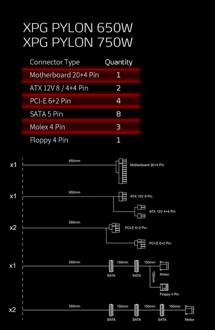 XPG Pylon 650W 80+ Bronz Güç Kaynağı (PYLON650B-BKCEU)
