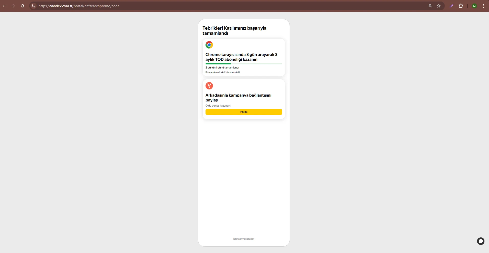 Aga şey sorucam ben 1-2 hafta önce yandexten s sport kampanyası drnedim kod gelmedi kampanya sona ermiş şimdi tod istiyorum süreniz doldu diyo ve hangisi doğru link bulamadım araştırıp atarmısın sana zahmetAşağıdaki linkten aşamaları tamamladıktan sonra mobil verinizle yandex üzerinden 3 gün arama yaptığınızda SMS olarak kod geliyor. (Sayaçta ilerleme gözükmüyor.)
