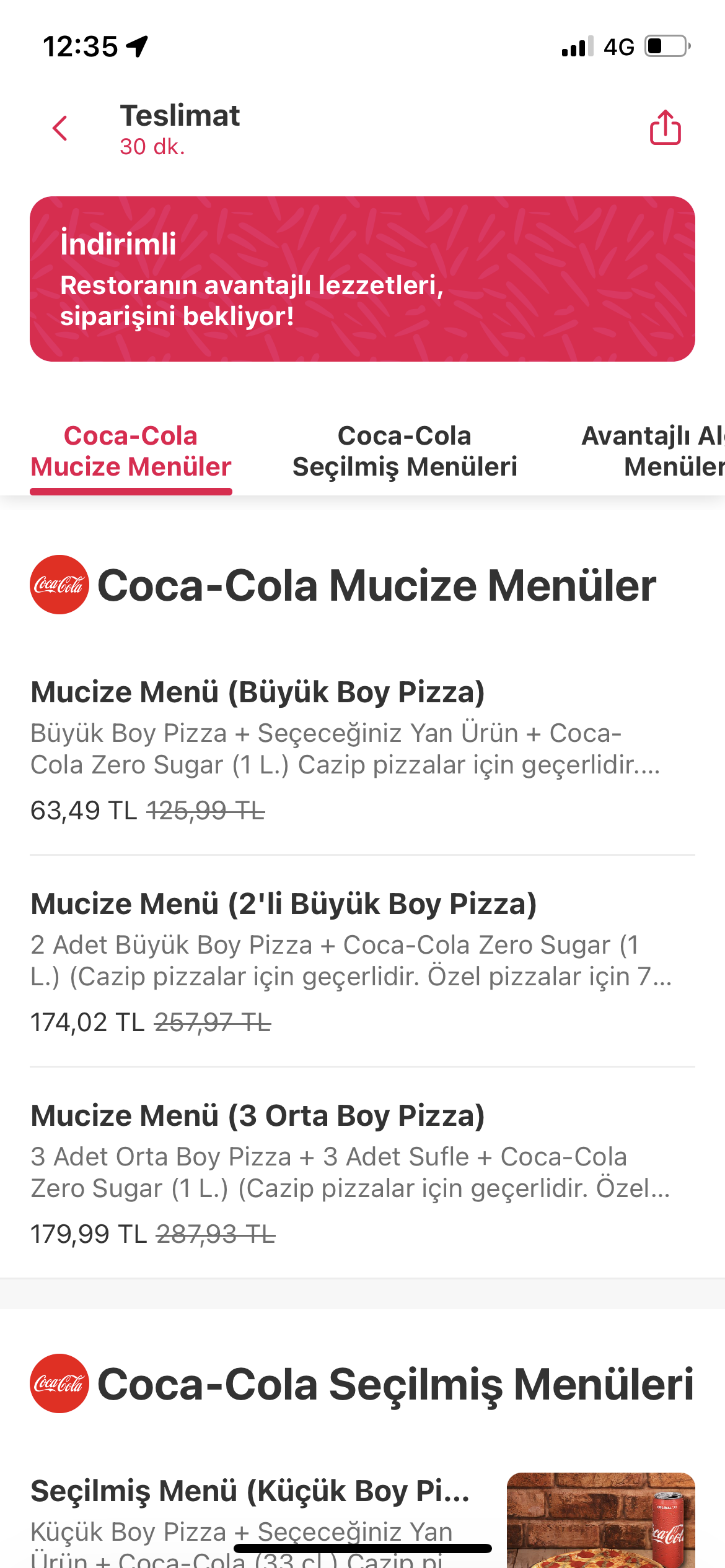 60 TL dominos indriim yapmış menüde ek olarak 40 da indirmiş enfes 40 ile