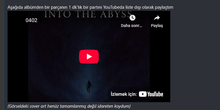 Aşağıda albümden bir parçanın 1 dk'lık bir partını YouTubeda liste dışı olarak paylaştım