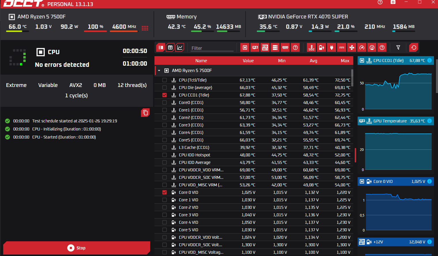 Beyler pc yi yeni aldım daha 1 hafta olmadı sistem özellikleri ryzen 5 7500f 32 gb ram msi pro b650m-b rtx msi rtx 4070 super gaming x slim driverların hepsi güncel windows 11 kullanıyorum 24H2 sürümü parçalarda sıkıntı olduğunu düşünmüyorum düşünmek dahi istemiyorum ama anlamsız bir şekilde arada kasıyor sonra düzeliyor sebebini bilmiyorum lütfen acil yardım edin parçalarda bi sıkıntı varsa nasıl öğrenicem mesela