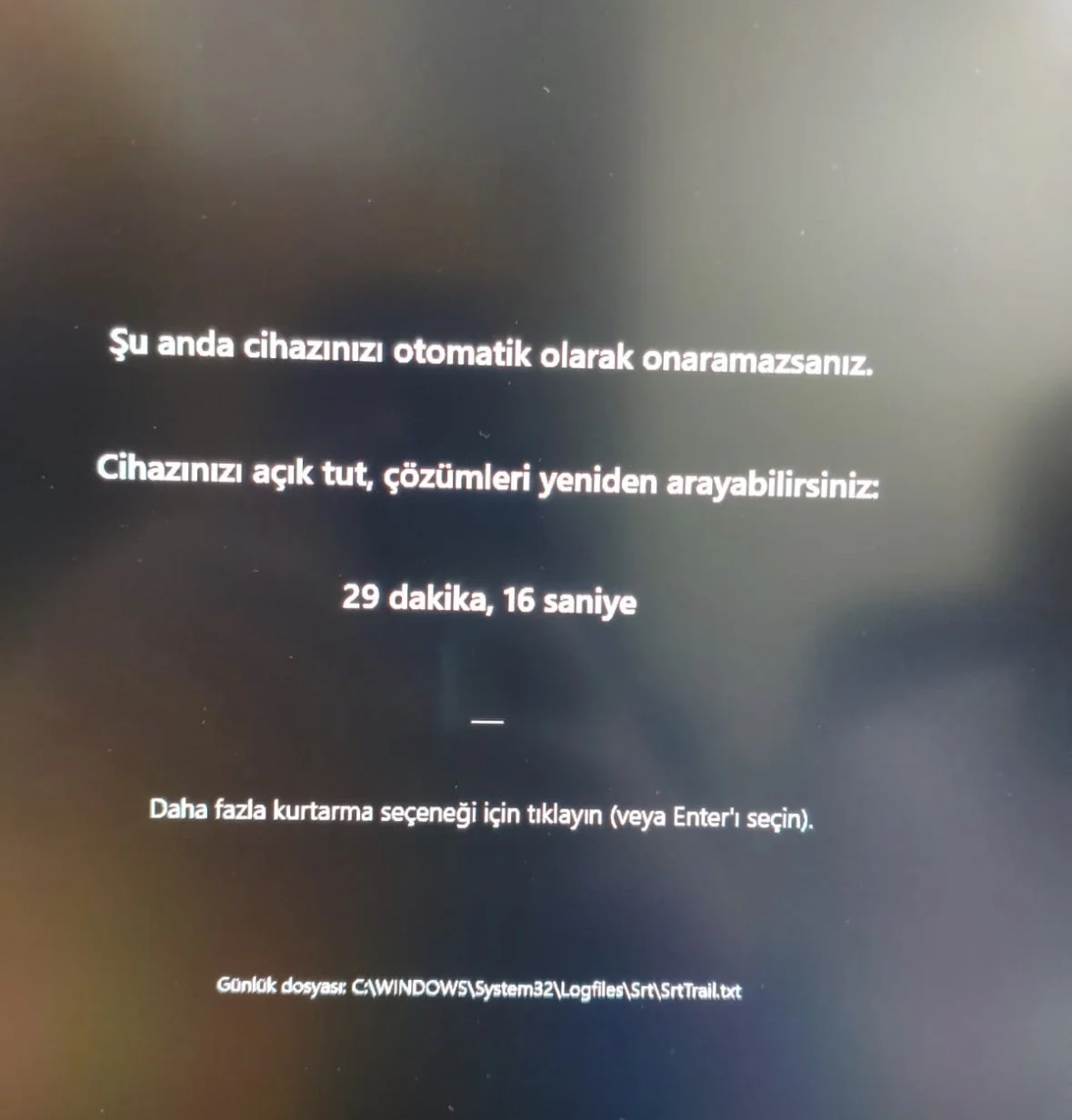 A Aykut25 80+ Katılım 13 Eylül 2025 Mesajlar 33 Reaksiyon skoru 1 3 Ekim 2025 #1 Merhaba, Arkadaşımın yeni sisteminde bu şekilde hata alıyoruz kendisi önce win yükleyip sonra bios yüklemiş. Bir kaç kere de yeniden başlatırken your device ran into a problem hatası aldı. Yardımcı olabilirmisiniz Ekler IMG_5874.webp 39.9 KB · Hit: 96