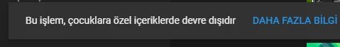 Başlıkta da belirttiğim gibi youtube da belirli bir sayfanın bildirimlerini açmaya çalıştığımda "Bu işlem, çocuklara özel içeriklerde devre dışıdır." diye bir bildiri çıkıyor ve işlemimi gerçekleştirmiyor. Yardımcı olabilecek var mı? Ben yapmadım ama galiba kendiliğinden çocuklara özel olarak açılmış youtube veya google. (Google hesabım uzun yıllardır var yeni oluyor bu durum.)