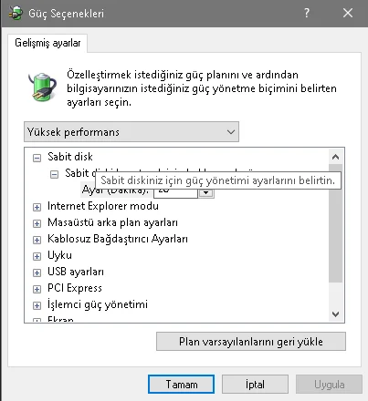 masaüstü pc de yüksek performansa alamıyorum, uygula seçenegi tıklanmıyor. tamam diyince de olmuyor. sebebi nedir ?