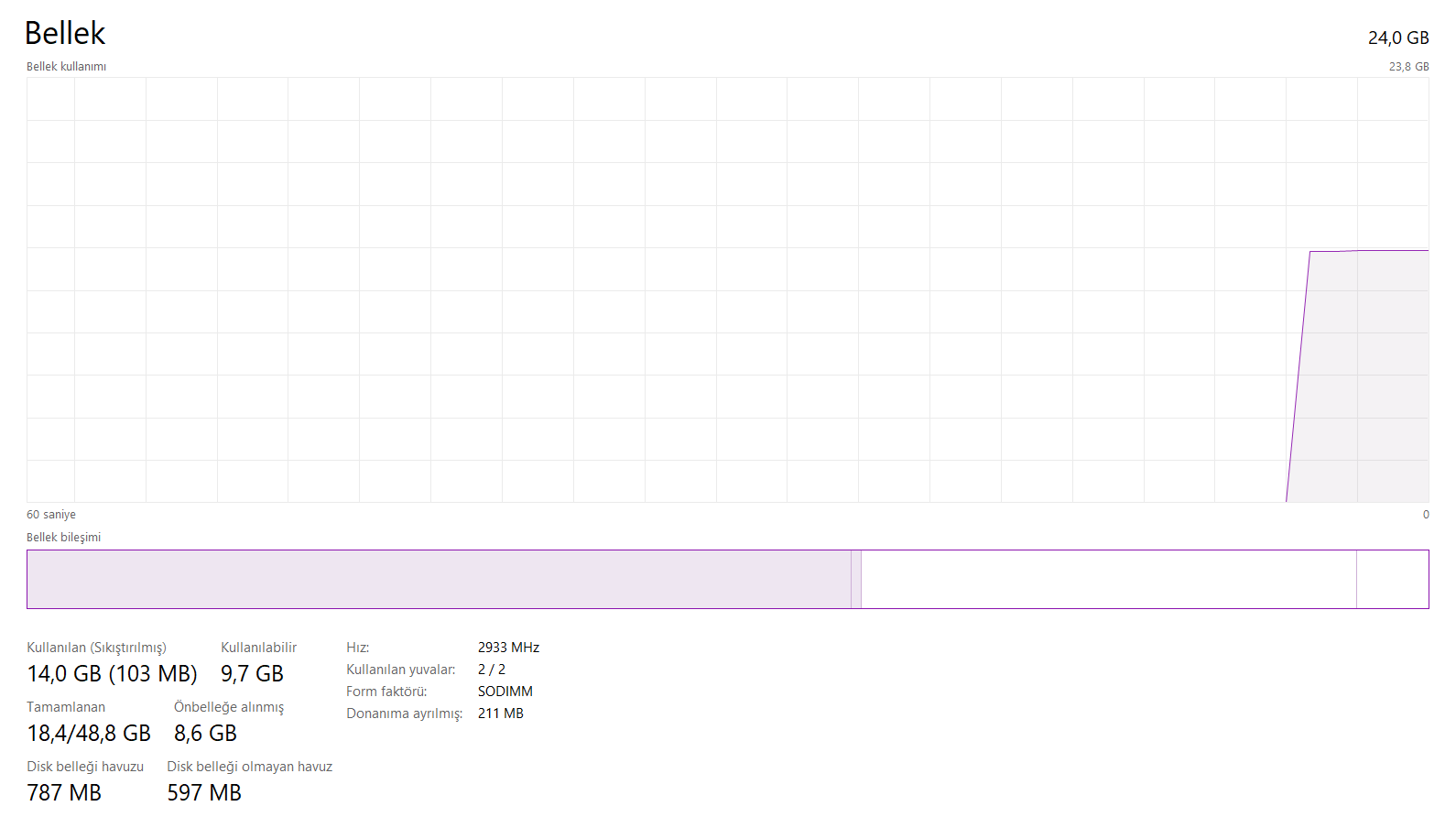 Arkadaşlar laptop kullanıyorum ve totalde 24GB ram'e sahibim. Herhangi bir aktivite yaptığımda oyun ya da render alınımı falan 12 gb ram kullansa bile direkt 100 de 100 kullanıyor olarak gözüküyor. Laptop sanki 24 gb rame sahip değilimde 12 GB ram'e sahibim olarak görüyor bunu nasıl çözebilirim. En ufak işlemler bile problem olmaya başladı.