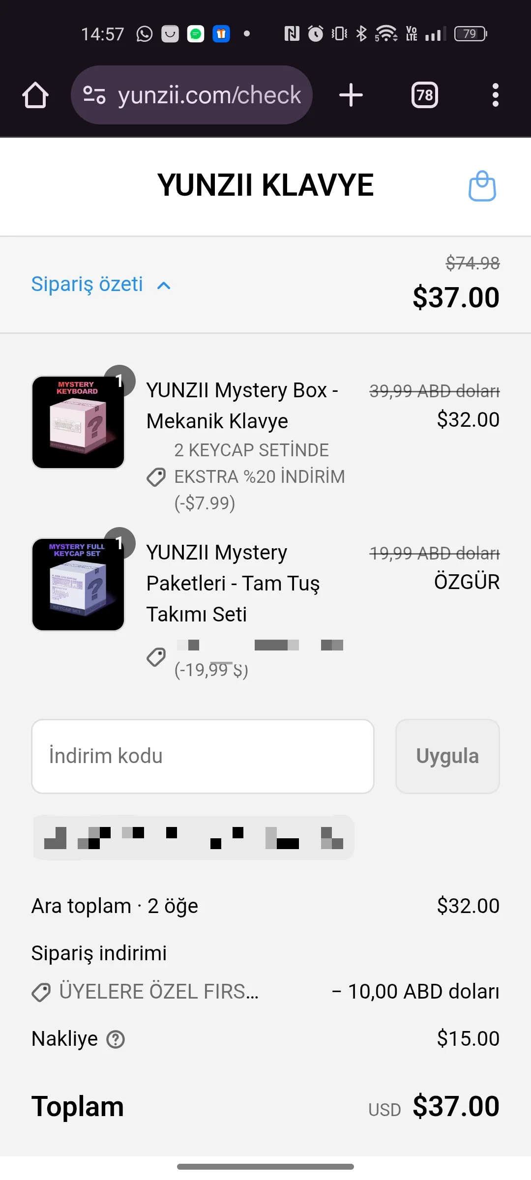 Arkadaşlar siteye başta kayıt oluyorsunuz sol altta ödül yazan yere tıklayıp oradan ücretsiz keycaps alıyorsunuz ondan sonra sepete mystery box ekliyorsunuz siteye yeni kayıt olanlara 10 dolar veriyor sepeti 45 dolara tamamlarsanız shipping ücretsiz oluyor gümrükten geçip gecmeyecegi belli değil şansını denemek isteyenler alsın.